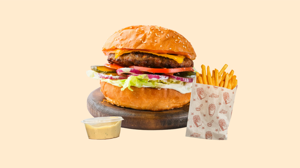 Чизбургер, картофель фри, соус на выбор