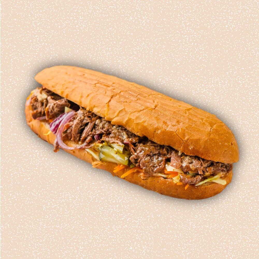 батон, котлета говяжья халал, помидоры, огурцы, фирменный соус, картофель фри